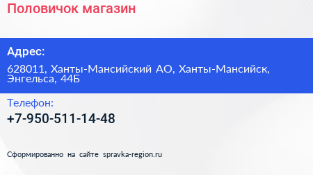 Половичок, магазин по адресу 628011, Ханты-Мансийский АО, Ханты-Мансийск, Энгельса, 44Б в дальнейшем Организация, размещена в следующих категориях: