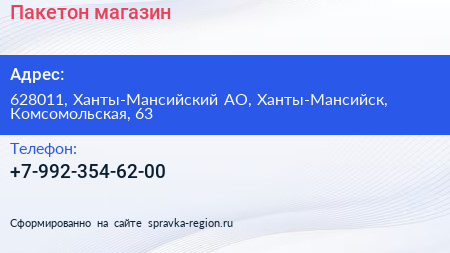 Пакетон, магазин по адресу 628011, Ханты-Мансийский АО, Ханты-Мансийск, Комсомольская, 63 в дальнейшем Организация, размещена в следующих категориях: