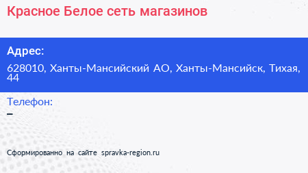 Красное & Белое, сеть магазинов по адресу 628010, Ханты-Мансийский АО, Ханты-Мансийск, Тихая, 44 в дальнейшем Организация, размещена в следующих категориях: