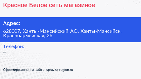 Красное & Белое, сеть магазинов по адресу 628007, Ханты-Мансийский АО, Ханты-Мансийск, Красноармейская, 26 в дальнейшем Организация, размещена в следующих категориях: