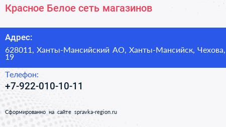 Красное & Белое, сеть магазинов по адресу 628011, Ханты-Мансийский АО, Ханты-Мансийск, Чехова, 19 в дальнейшем Организация, размещена в следующих категориях: