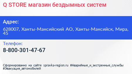 Q STORE, магазин бездымных систем по адресу 628007, Ханты-Мансийский АО, Ханты-Мансийск, Мира, 45 в дальнейшем Организация, размещена в следующих категориях: