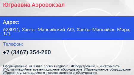 Юграавиа, Аэровокзал по адресу 628011, Ханты-Мансийский АО, Ханты-Мансийск, Мира, 1/1 в дальнейшем Организация, размещена в следующих категориях: