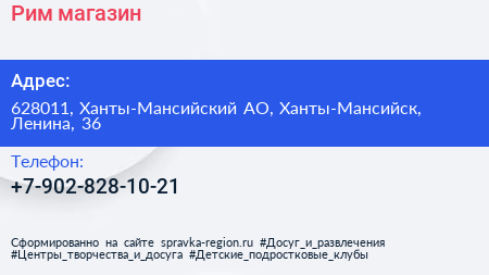 Рим, магазин по адресу 628011, Ханты-Мансийский АО, Ханты-Мансийск, Ленина, 36 в дальнейшем Организация, размещена в следующих категориях: