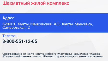Шахматный, жилой комплекс по адресу 628001, Ханты-Мансийский АО, Ханты-Мансийск, Самаровская, 2 в дальнейшем Организация, размещена в следующих категориях: