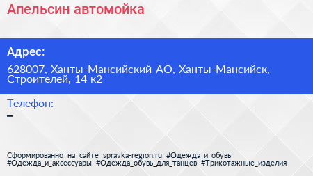 Апельсин, автомойка по адресу 628007, Ханты-Мансийский АО, Ханты-Мансийск, Строителей, 14 к2 в дальнейшем Организация, размещена в следующих категориях: