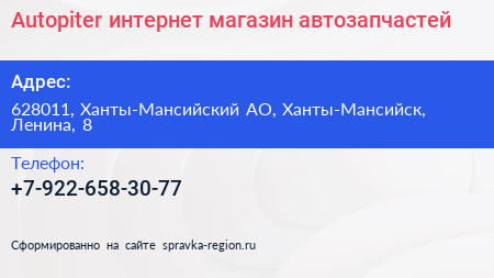 Autopiter, интернет-магазин автозапчастей в Ханты-Мансийске