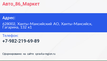 Авто_86_Маркет по адресу 628002, Ханты-Мансийский АО, Ханты-Мансийск, Гагарина, 132 к1 в дальнейшем Организация, размещена в следующих категориях: