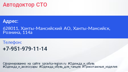 Автодоктор, СТО по адресу 628011, Ханты-Мансийский АО, Ханты-Мансийск, Рознина, 114а в дальнейшем Организация, размещена в следующих категориях:
