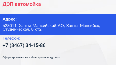 ДЭП, автомойка по адресу 628011, Ханты-Мансийский АО, Ханты-Мансийск, Студенческая, 8 ст2 в дальнейшем Организация, размещена в следующих категориях: