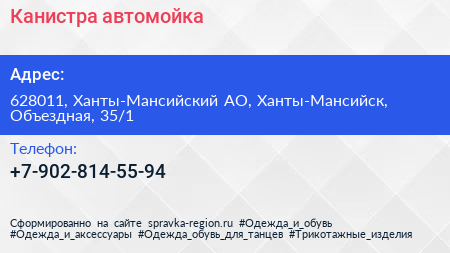 Канистра, автомойка по адресу 628011, Ханты-Мансийский АО, Ханты-Мансийск, Объездная, 35/1 в дальнейшем Организация, размещена в следующих категориях: