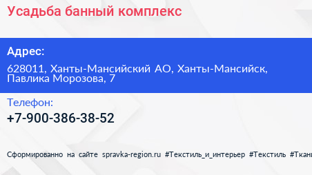 Усадьба, банный комплекс по адресу 628011, Ханты-Мансийский АО, Ханты-Мансийск, Павлика Морозова, 7 в дальнейшем Организация, размещена в следующих категориях: