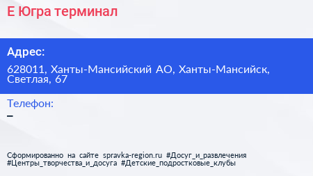 Е-Югра, терминал по адресу 628011, Ханты-Мансийский АО, Ханты-Мансийск, Светлая, 67 в дальнейшем Организация, размещена в следующих категориях:
