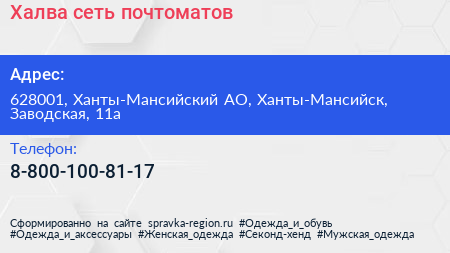 Халва, сеть почтоматов по адресу 628001, Ханты-Мансийский АО, Ханты-Мансийск, Заводская, 11а в дальнейшем Организация, размещена в следующих категориях: