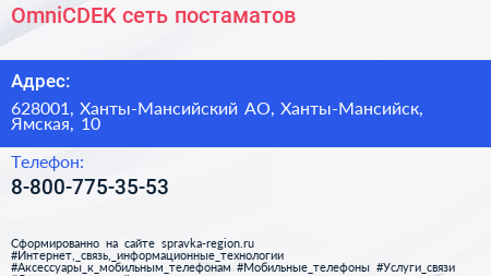OmniCDEK, сеть постаматов по адресу 628001, Ханты-Мансийский АО, Ханты-Мансийск, Ямская, 10 в дальнейшем Организация, размещена в следующих категориях: