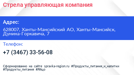 Стрела, управляющая компания по адресу 628007, Ханты-Мансийский АО, Ханты-Мансийск, Дунина-Горкавича, 7 в дальнейшем Организация, размещена в следующих категориях: