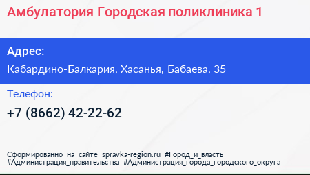 Амбулатория. Городская поликлиника №1 по адресу Кабардино-Балкария, Хасанья, Бабаева, 35 в дальнейшем Организация, размещена в следующих категориях: