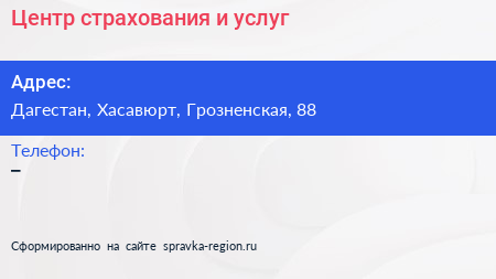 Центр страхования и услуг по адресу Дагестан, Хасавюрт, Грозненская, 88 в дальнейшем Организация, размещена в следующих категориях: