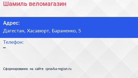 Шамиль, веломагазин по адресу Дагестан, Хасавюрт, Бараненко, 5 в дальнейшем Организация, размещена в следующих категориях: