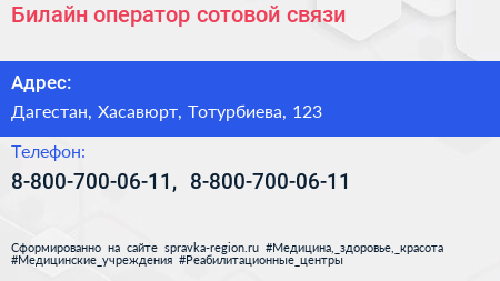 Билайн, оператор сотовой связи по адресу Дагестан, Хасавюрт, Тотурбиева, 123 в дальнейшем Организация, размещена в следующих категориях: