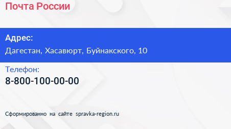 Почта России по адресу Дагестан, Хасавюрт, Буйнакского, 10 в дальнейшем Организация, размещена в следующих категориях: