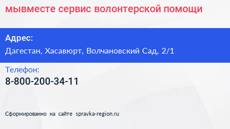 #мывместе, сервис волонтерской помощи по адресу Дагестан, Хасавюрт, Волчановский Сад, 2/1 в дальнейшем Организация, размещена в следующих категориях: