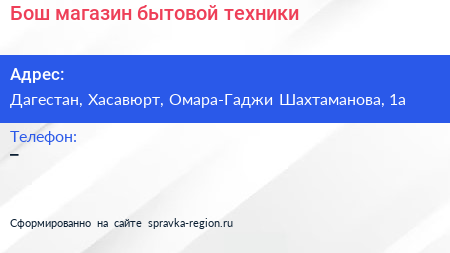 Бош, магазин бытовой техники по адресу Дагестан, Хасавюрт, Омара-Гаджи Шахтаманова, 1а в дальнейшем Организация, размещена в следующих категориях: