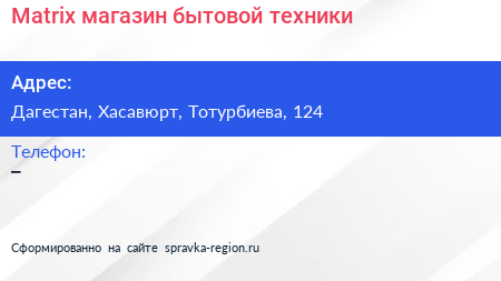 Matrix, магазин бытовой техники по адресу Дагестан, Хасавюрт, Тотурбиева, 124 в дальнейшем Организация, размещена в следующих категориях: