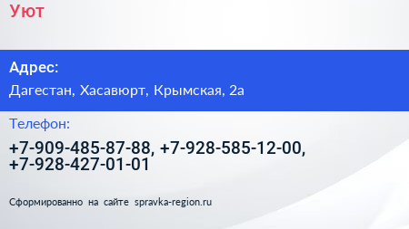 Уют по адресу Дагестан, Хасавюрт, Крымская, 2а в дальнейшем Организация, размещена в следующих категориях: