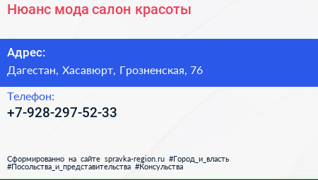 Нюанс-мода, салон красоты по адресу Дагестан, Хасавюрт, Грозненская, 76 в дальнейшем Организация, размещена в следующих категориях: