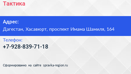 Тактика по адресу Дагестан, Хасавюрт, проспект Имама Шамиля, 164 в дальнейшем Организация, размещена в следующих категориях: