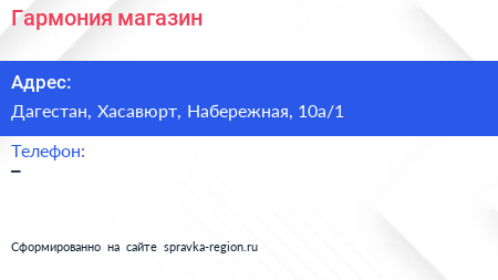 Гармония, магазин по адресу Дагестан, Хасавюрт, Набережная, 10а/1 в дальнейшем Организация, размещена в следующих категориях: