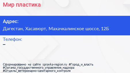 Мир пластика по адресу Дагестан, Хасавюрт, Махачкалинское шоссе, 12Б в дальнейшем Организация, размещена в следующих категориях: