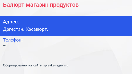 Балюрт, магазин продуктов по адресу Дагестан, Хасавюрт, в дальнейшем Организация, размещена в следующих категориях: