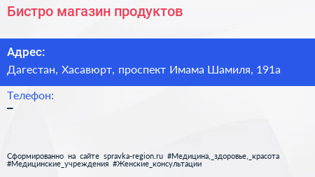 Бистро, магазин продуктов по адресу Дагестан, Хасавюрт, проспект Имама Шамиля, 191а в дальнейшем Организация, размещена в следующих категориях: