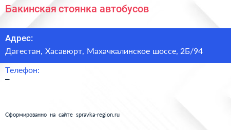 Бакинская стоянка автобусов по адресу Дагестан, Хасавюрт, Махачкалинское шоссе, 2Б/94 в дальнейшем Организация, размещена в следующих категориях: