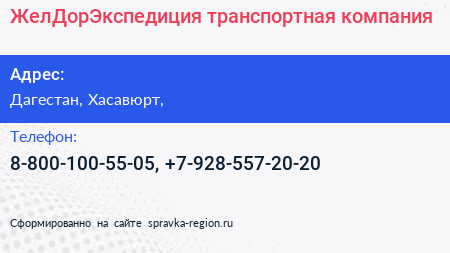 ЖелДорЭкспедиция, транспортная компания по адресу Дагестан, Хасавюрт, в дальнейшем Организация, размещена в следующих категориях: