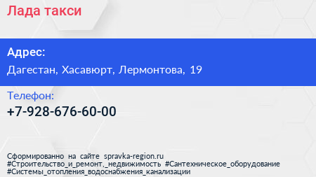 Лада, такси по адресу Дагестан, Хасавюрт, Лермонтова, 19 в дальнейшем Организация, размещена в следующих категориях:
