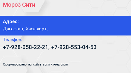 Мороз-Сити по адресу Дагестан, Хасавюрт, в дальнейшем Организация, размещена в следующих категориях: