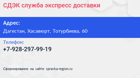 СДЭК, служба экспресс-доставки по адресу Дагестан, Хасавюрт, Тотурбиева, 60 в дальнейшем Организация, размещена в следующих категориях:
