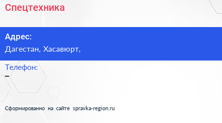 Спецтехника по адресу Дагестан, Хасавюрт, в дальнейшем Организация, размещена в следующих категориях: