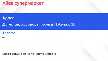 Айва, супермаркет по адресу Дагестан, Хасавюрт, проезд Набиева, 18 в дальнейшем Организация, размещена в следующих категориях:
