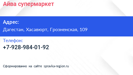 Айва, супермаркет по адресу Дагестан, Хасавюрт, Грозненская, 109 в дальнейшем Организация, размещена в следующих категориях: