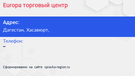 Europa, торговый центр по адресу Дагестан, Хасавюрт, в дальнейшем Организация, размещена в следующих категориях: