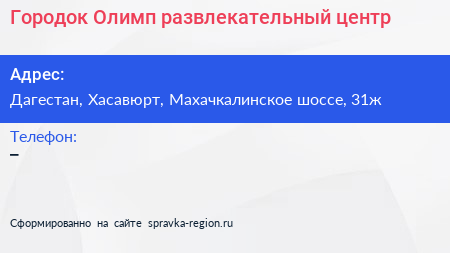 Городок Олимп, развлекательный центр по адресу Дагестан, Хасавюрт, Махачкалинское шоссе, 31ж в дальнейшем Организация, размещена в следующих категориях: