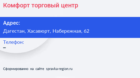 Комфорт, торговый центр по адресу Дагестан, Хасавюрт, Набережная, 62 в дальнейшем Организация, размещена в следующих категориях: