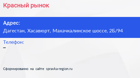 Красный рынок по адресу Дагестан, Хасавюрт, Махачкалинское шоссе, 2Б/94 в дальнейшем Организация, размещена в следующих категориях: