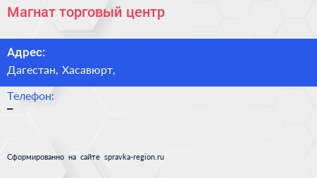 Магнат, торговый центр по адресу Дагестан, Хасавюрт, в дальнейшем Организация, размещена в следующих категориях: