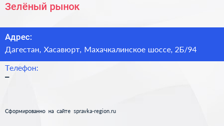 Зелёный рынок по адресу Дагестан, Хасавюрт, Махачкалинское шоссе, 2Б/94 в дальнейшем Организация, размещена в следующих категориях: