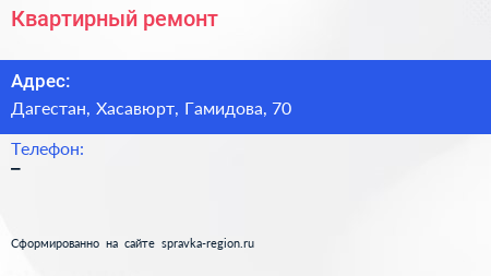Квартирный ремонт по адресу Дагестан, Хасавюрт, Гамидова, 70 в дальнейшем Организация, размещена в следующих категориях: